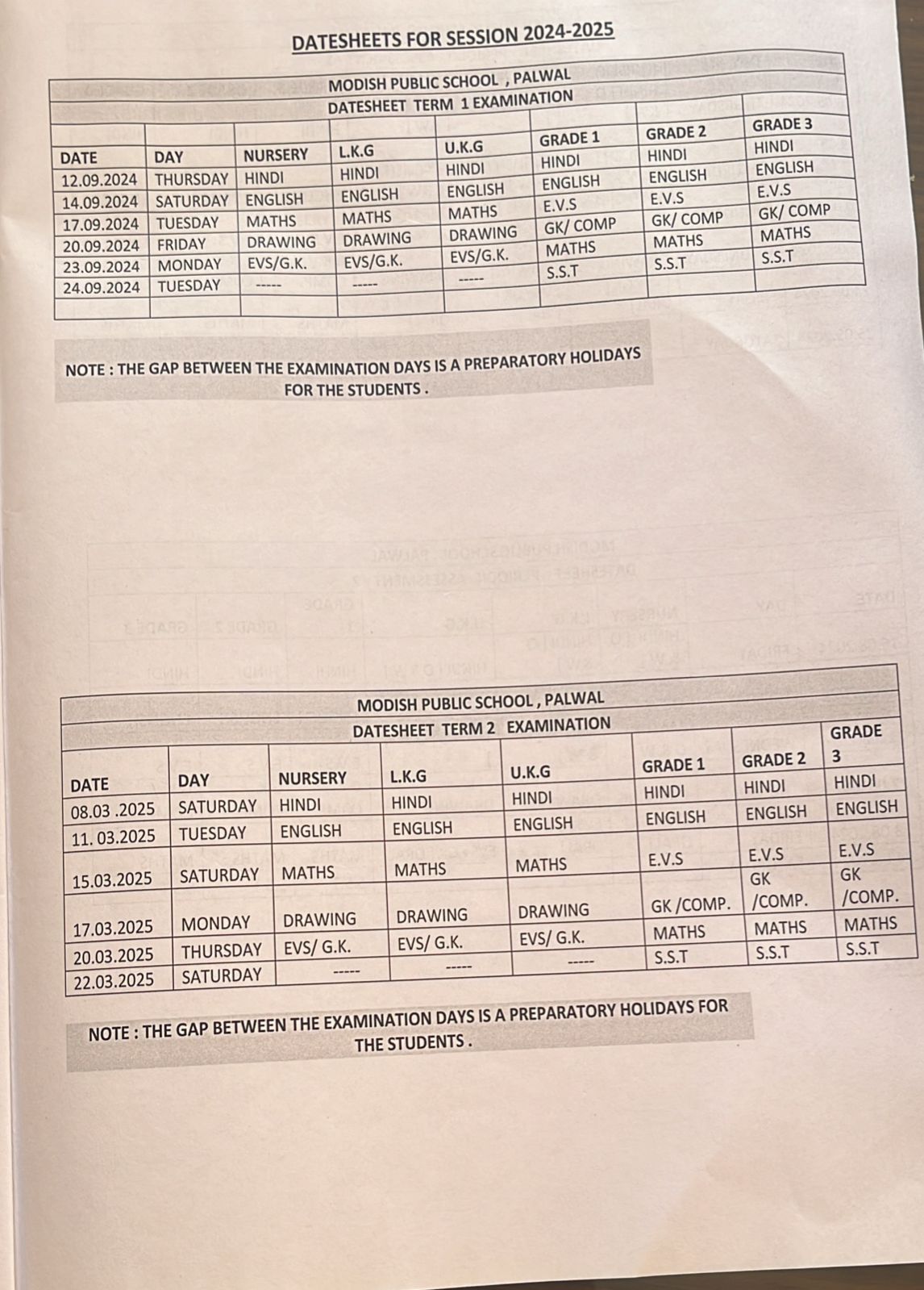 DATE SHEET OF EXAMINATION – Nur. to UKG
